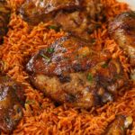 Perfectly seasoned, spice-infused Jollof rice paired with a golden-fried and crispy turkey wing or thigh.