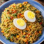 Savory stir-fry noodles tossed with fresh vegetables and topped with a perfectly cooked egg